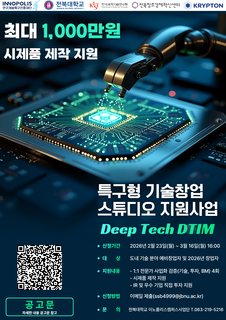 특구형 기술창업 스튜디오 Deep Tech DTIM 프로그램 (예비)창업자 모집
